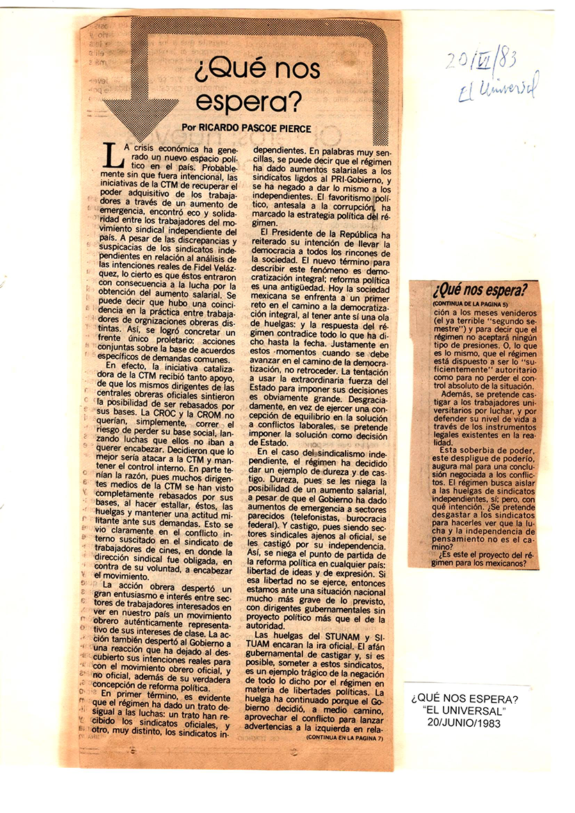 ¿Qué nos espera? El Universal. 20 de junio 1983