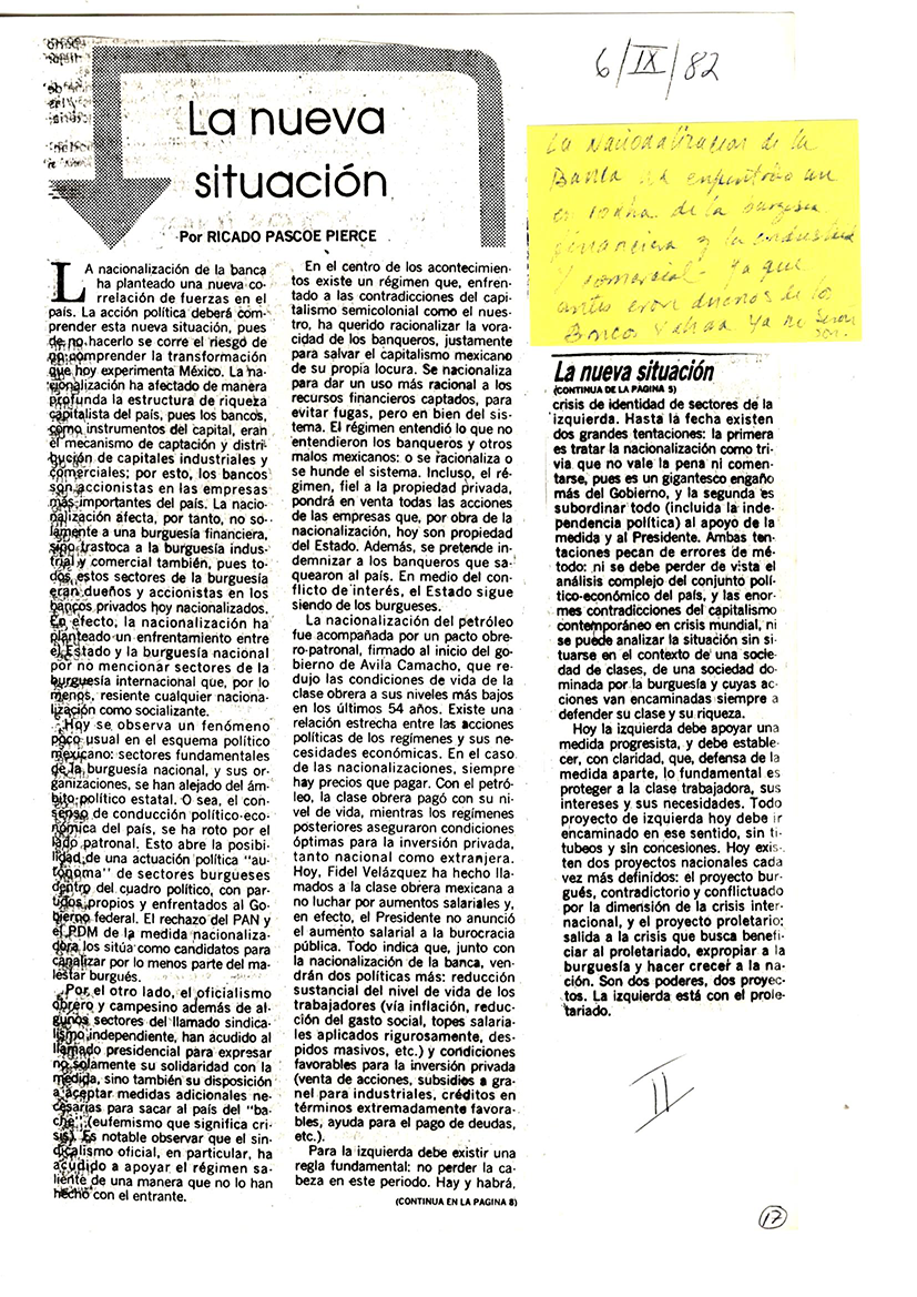 La nueva situación  El Universal. 6 de septiembre 1982.