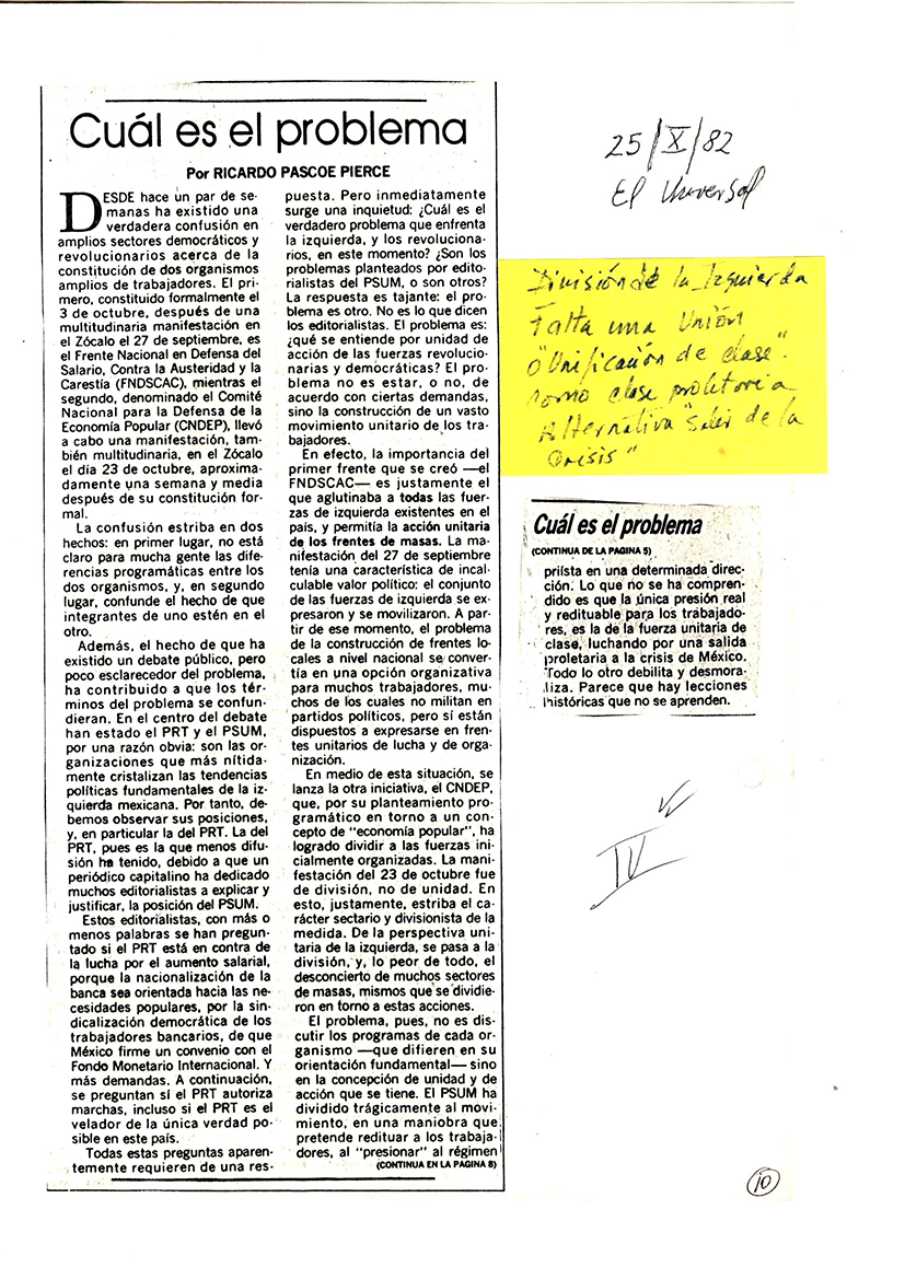 Cuál es el problema. El Universal. 25 de octubre 1982
